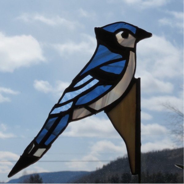 Ornement de vitrail sur piquet, pour plante d'intérieur.